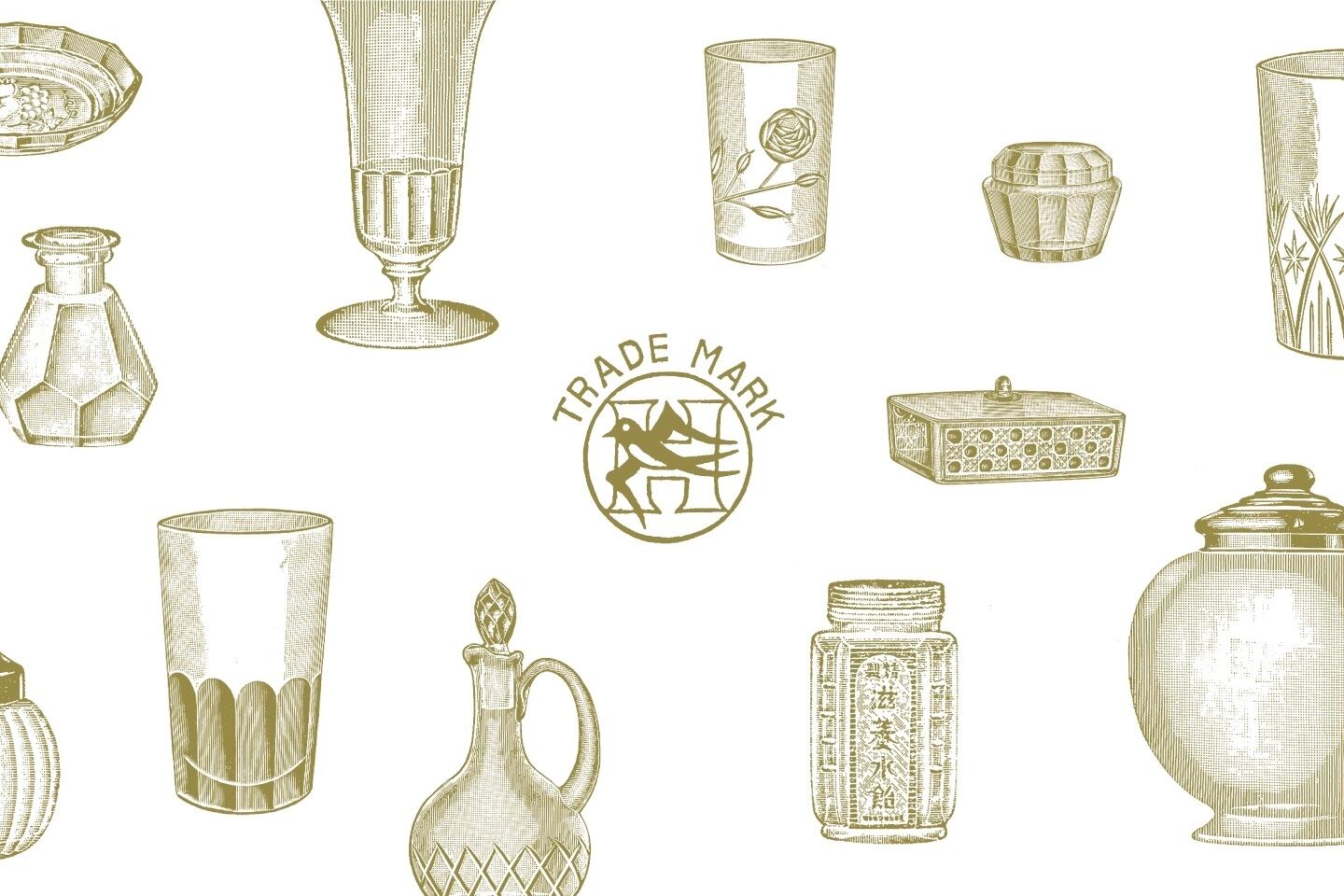 ロゴマークの舞う燕は創業者の廣田金太氏の故郷、新潟県燕市をイメージしており創業当時からの象徴です。「人の感性に訴えかける“ぬくもり”のある製品を作ってゆきたい」という思いから一貫して手作りで硝子を作り続けています。