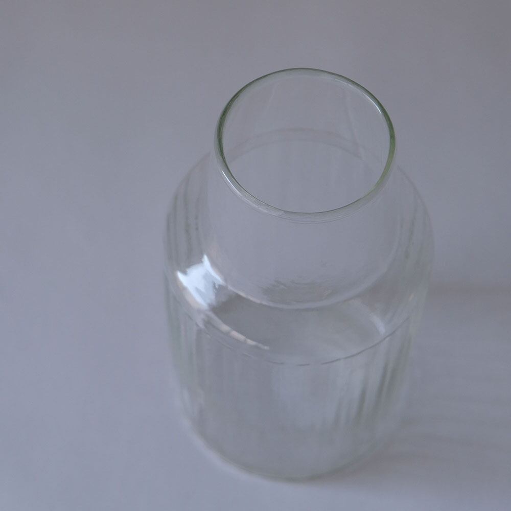 リューズガラスとは、再利用されたガラスのことをいいます。一般的には「リサイクルガラス」や「再生ガラス」とも呼ばれ、一度は捨てられたり不要になったガラスをリサイクルして使っています。ひとつひとつが職人たちの手によるハンドメイドです。ガラス表面に生まれるわずかな“しわ”や小さな気泡、繊細な表情の違い。さらにリューズガラスの風合いは、無機質な印象になりがちなガラス製品に独特のあたたかみや素朴さをもたらしてくれます。