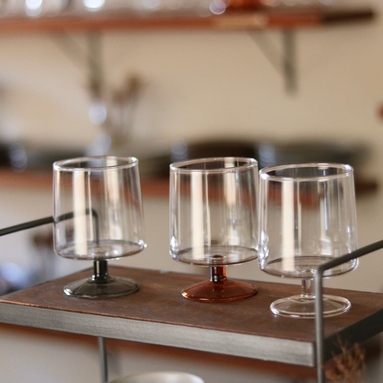 [スコン グラスはクリア・グレー・アンバーの3色展開。]