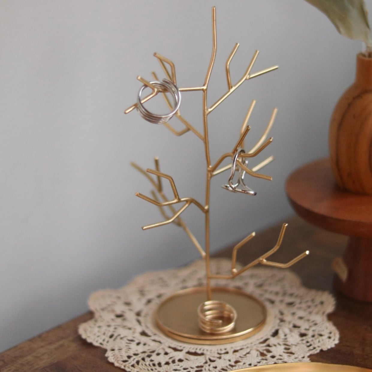 下の平な部分には、小さなピアスや指輪などを置いて♩ ぜひ、楽しみながらお気に入りのアクセサリーを飾ってみてください。