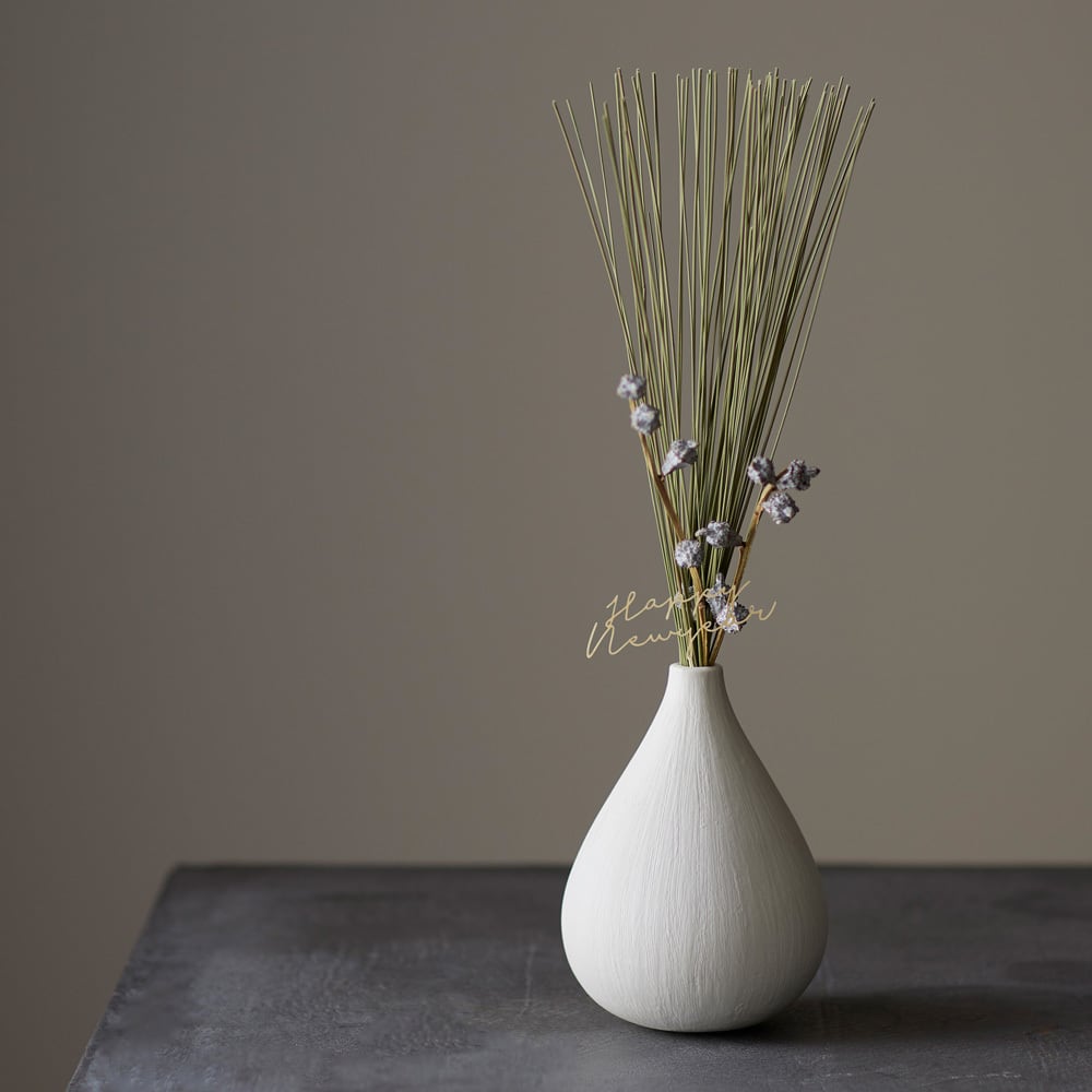 ナチュラルな白いボディに繊細なラインを施しており、どんなインテリにも馴染む主張しすぎないデザインなので、 置くだけでお部屋が柔らかい印象を演出し、韓国インテリアや北欧インテリアとも相性抜群のフラワーベースです。