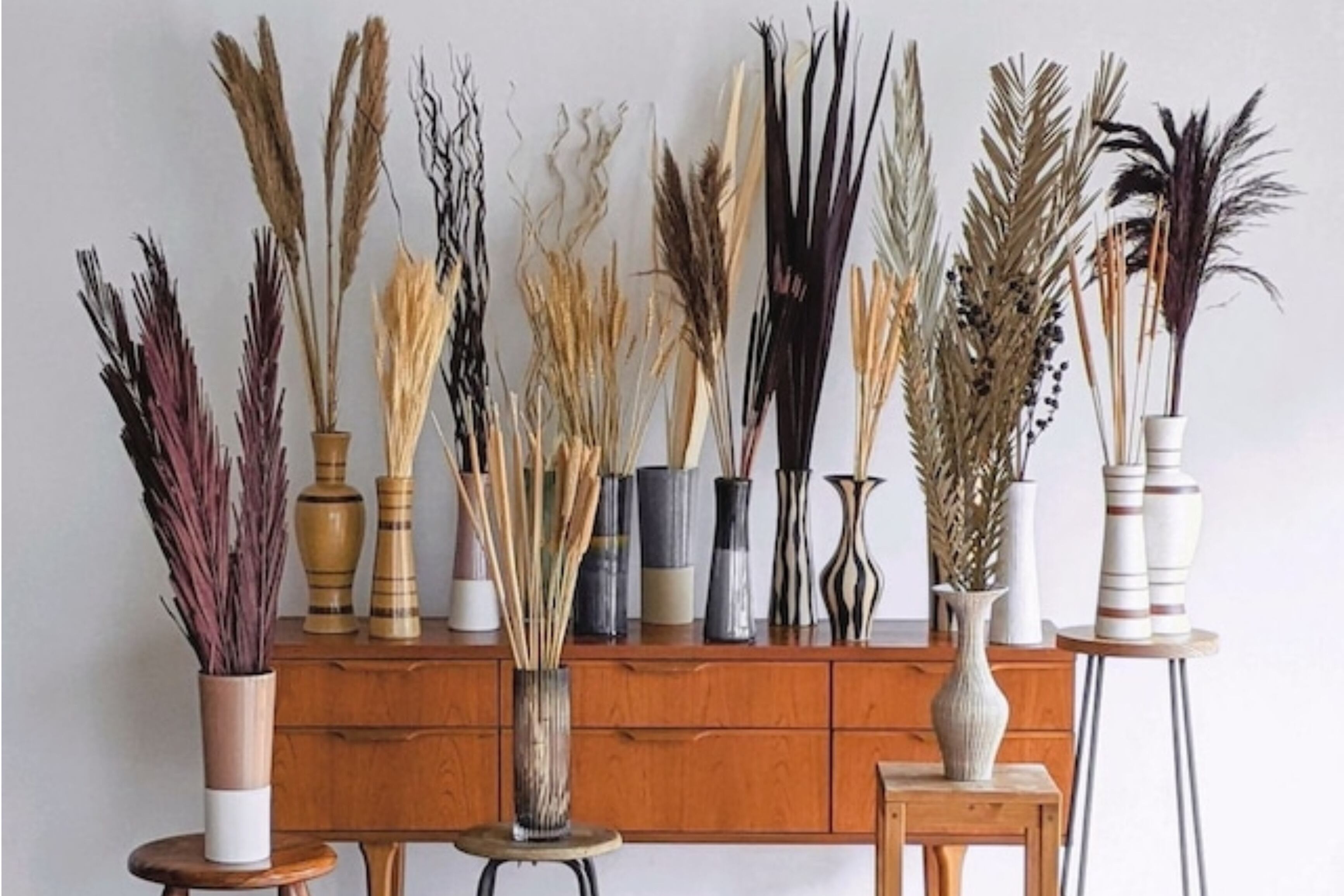 ナチュラルな植物素材を使用したドライプランツスティックやリーフたち。