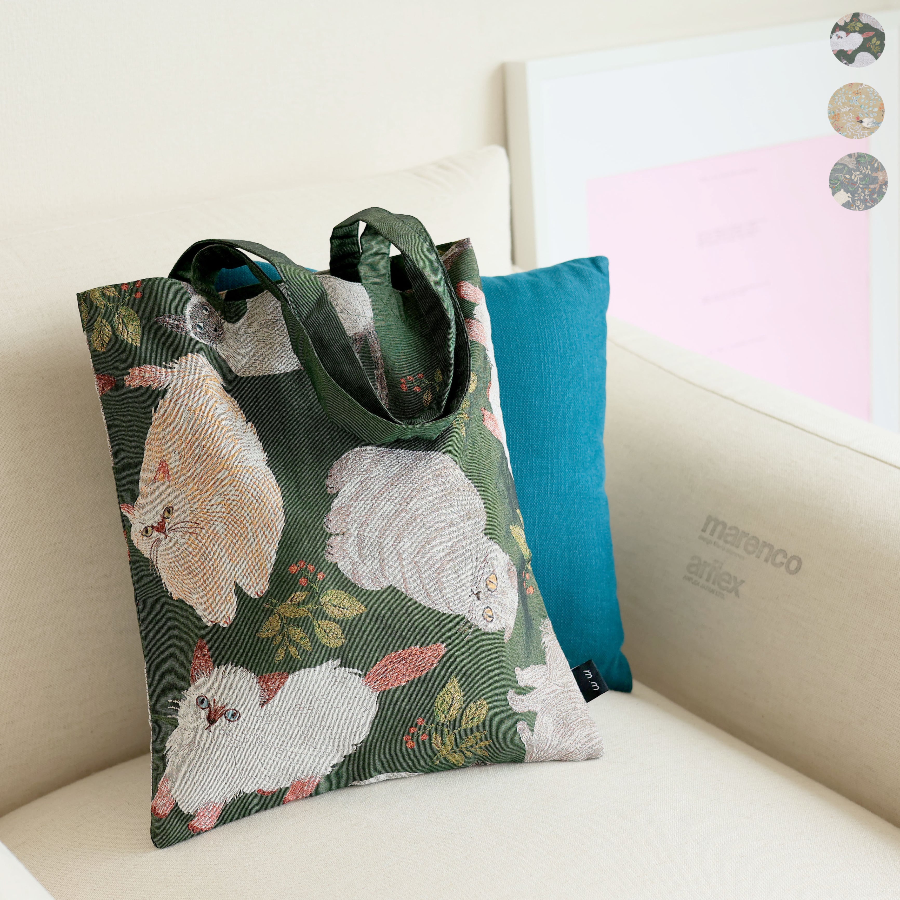 松尾ミユキさんの描く動物や植物をゴブラン織りの生地に落とし込んだトートバッグ