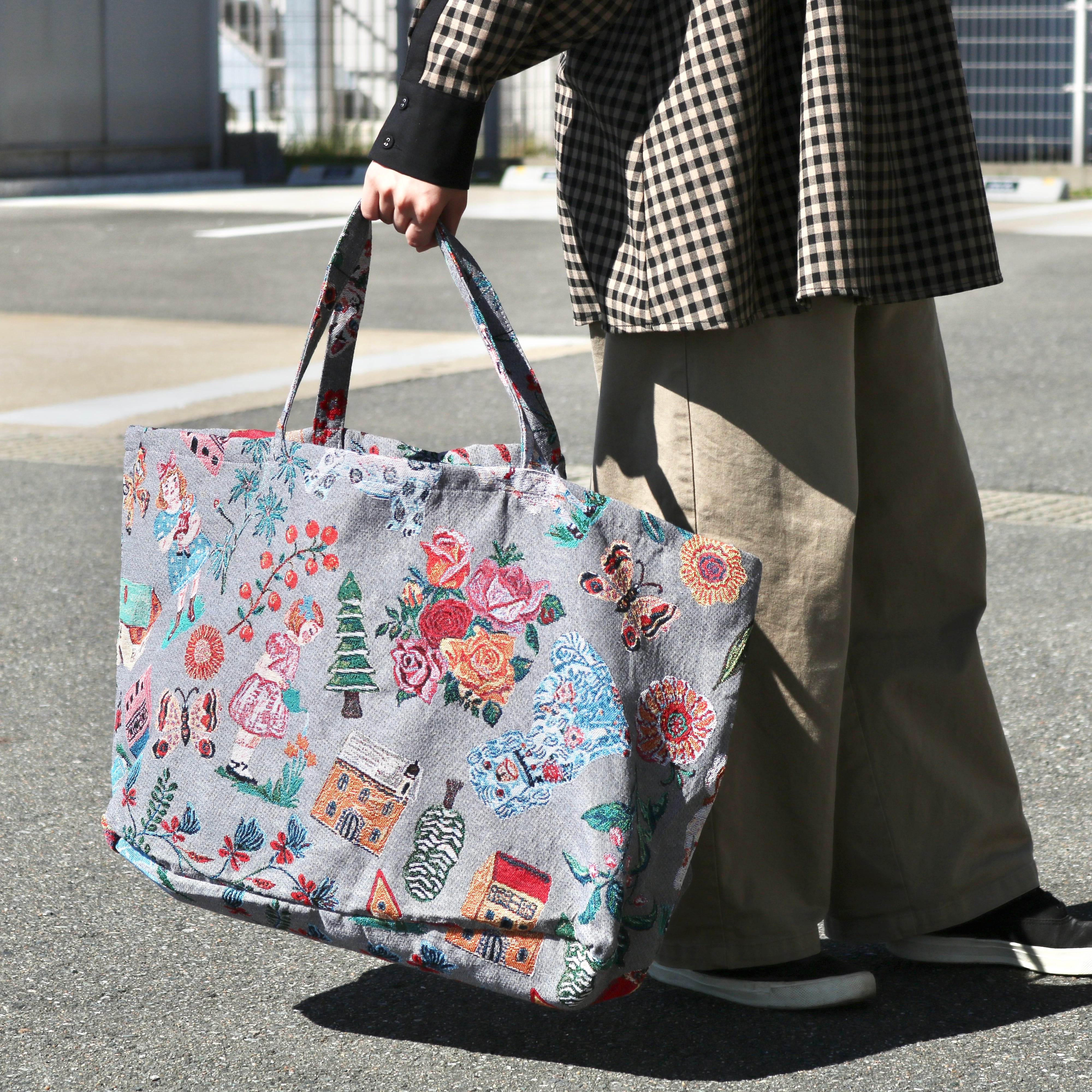 ナタリーレテさんの描く楽しいイラスト達をゴブラン織り生地に落とし込んだマーケットバッグ