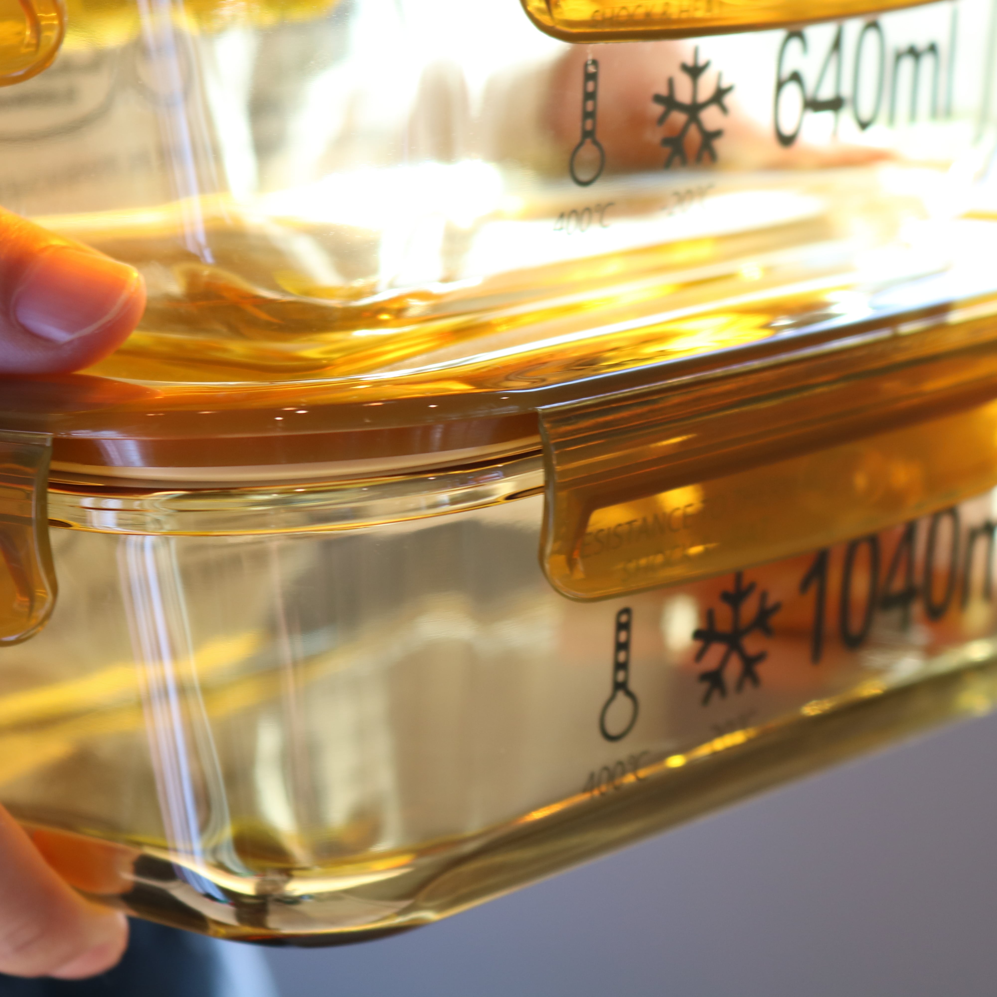 テーブルを彩る器にもなる耐熱ガラス製のフードコンテナ