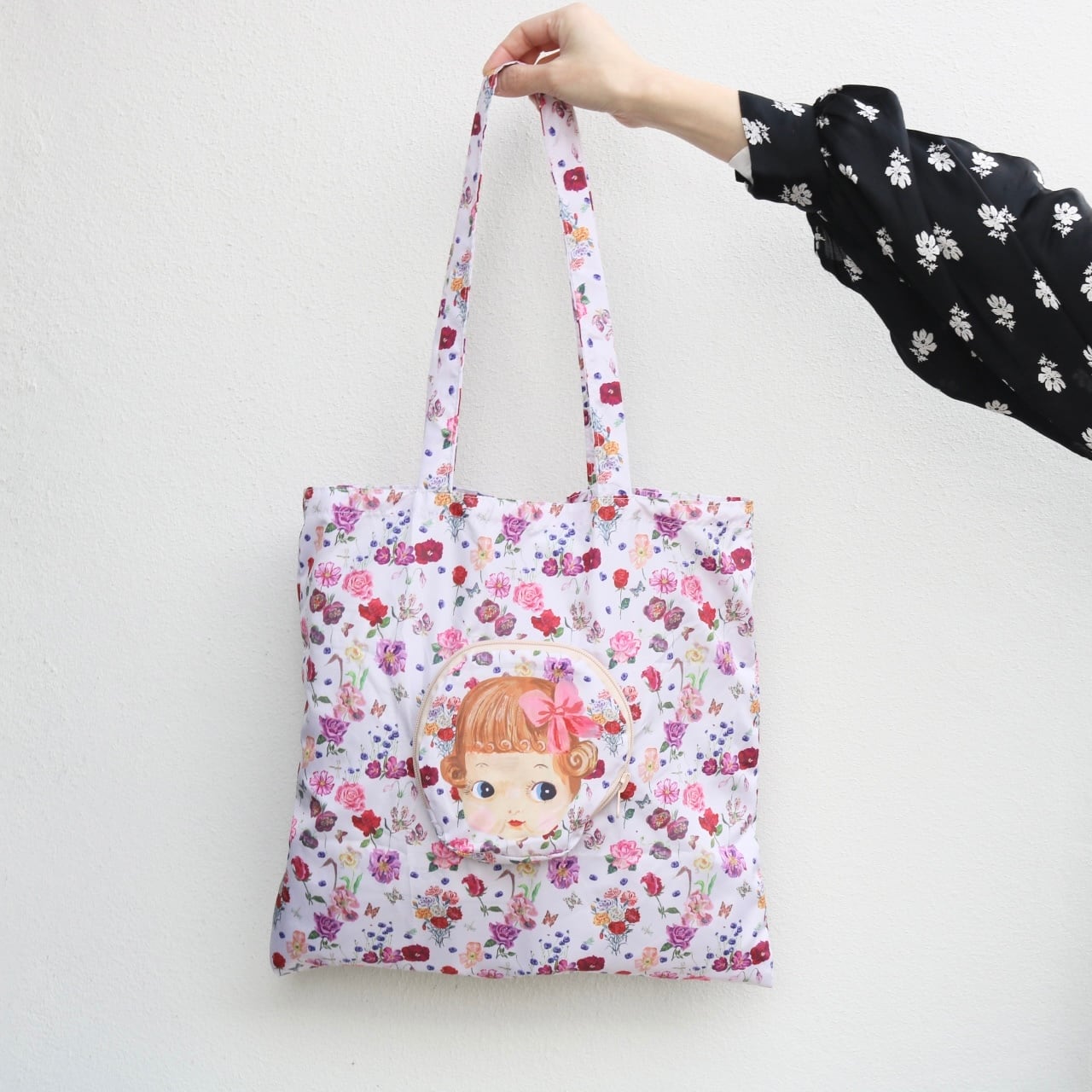 ナタリーレテさんの描くキュートな動物や女の子が目をひく収納ポーチ付きバッグ
