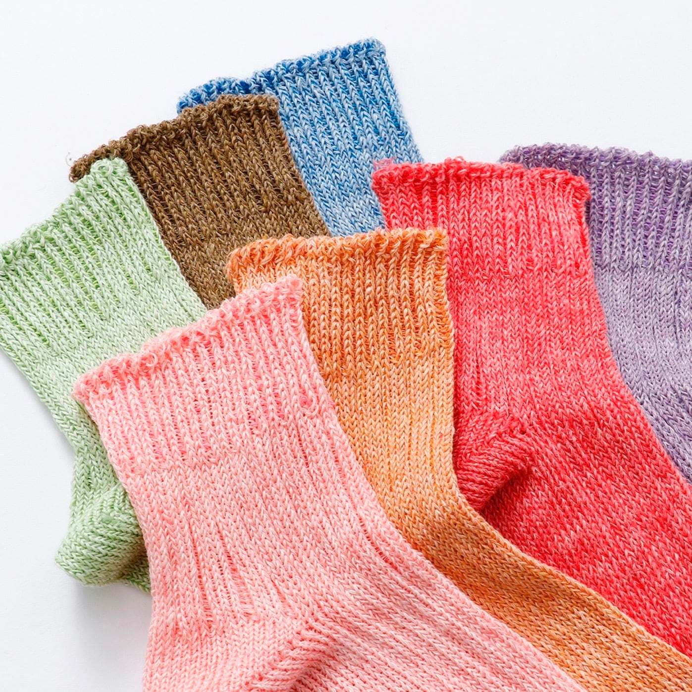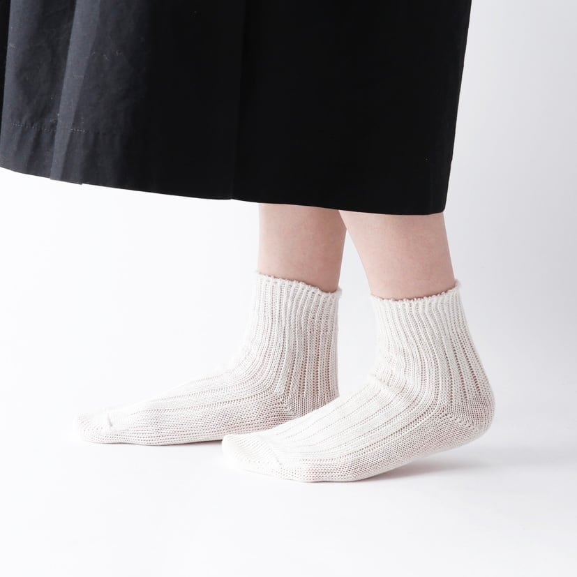 リネン糸をざっくりと編み立てた透け感のある程よい厚みのソックス