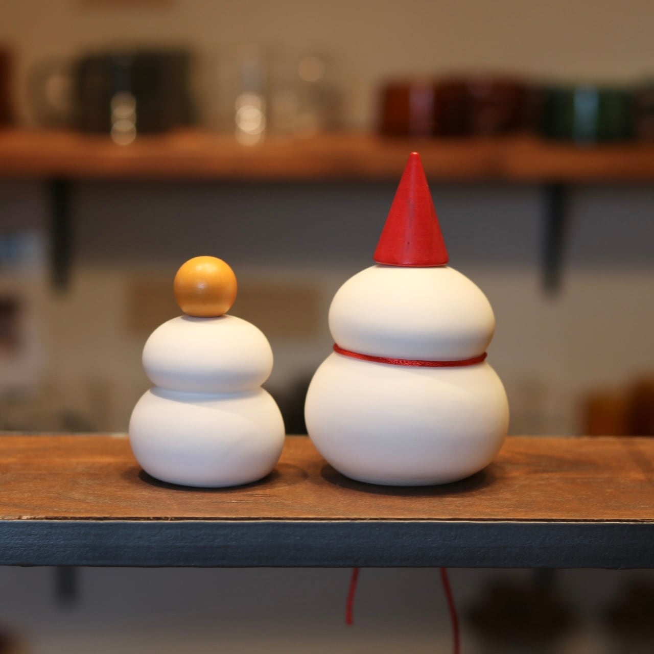 真っ白な半磁器(ストーンウェア)を使った毎年飾れるのが嬉しい雪だるまのオブジェです。