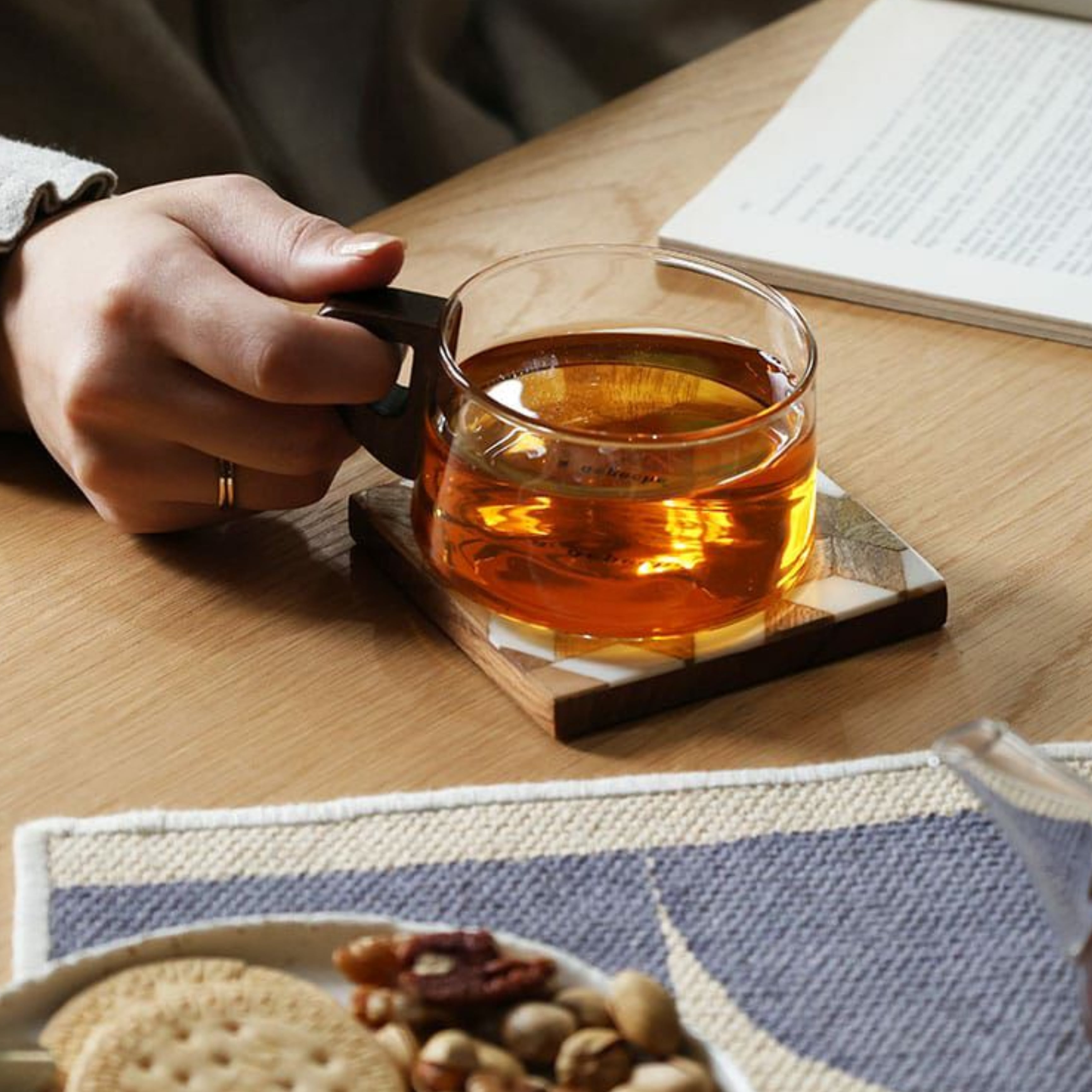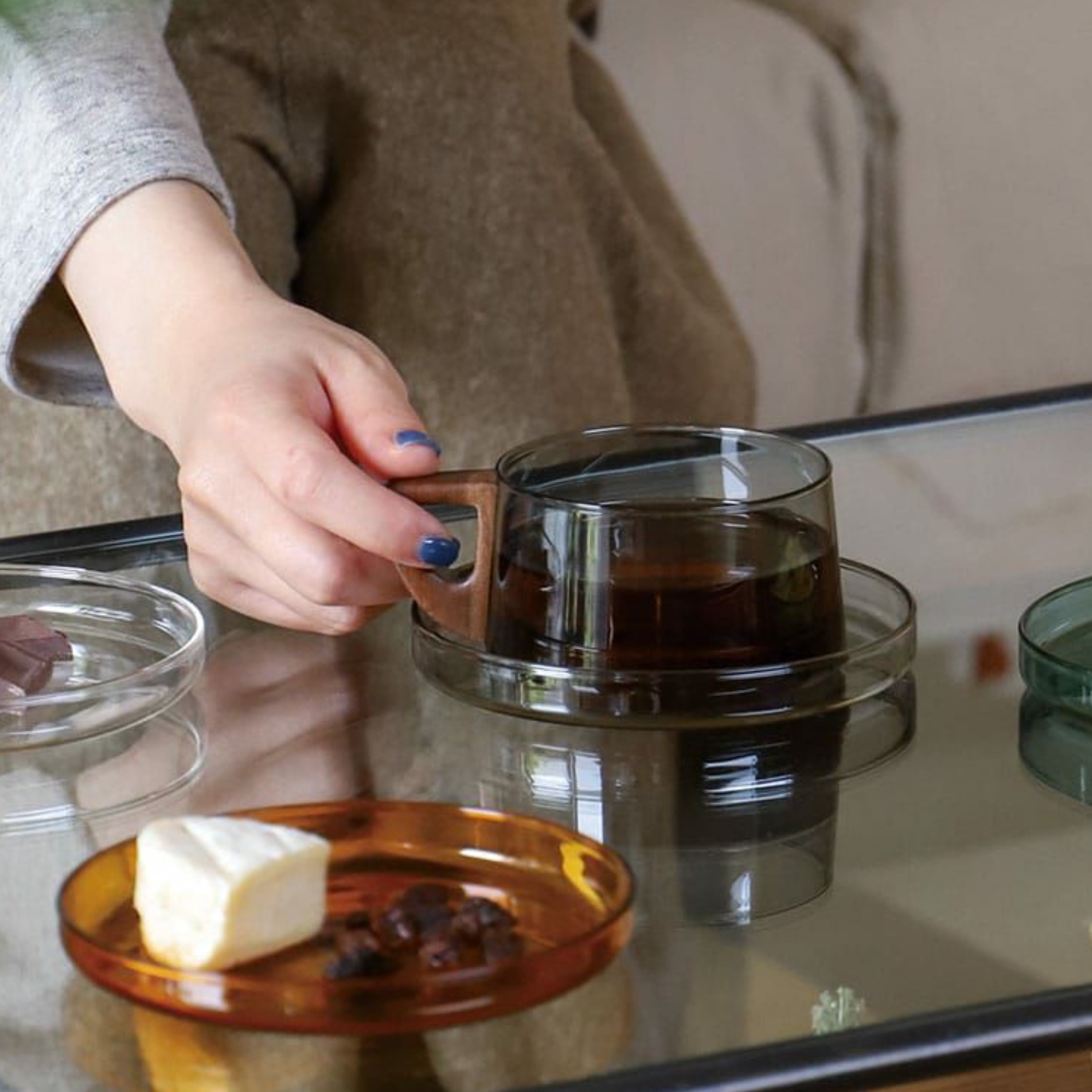 ウォルナットのやさしい感触、木目や色合いの自然なぬくもりが魅力の noon collection は、非常に安全な特性を持ち家庭用オーブンや調理器具にもよく使われているホウケイ酸ガラスを使用。ホウケイ酸ガラスは、低熱膨張率であるため耐熱衝撃性に優れています。急激な温度変化が生じても容易に割れず、長く愛用できる信頼の品質を実感いただけます。