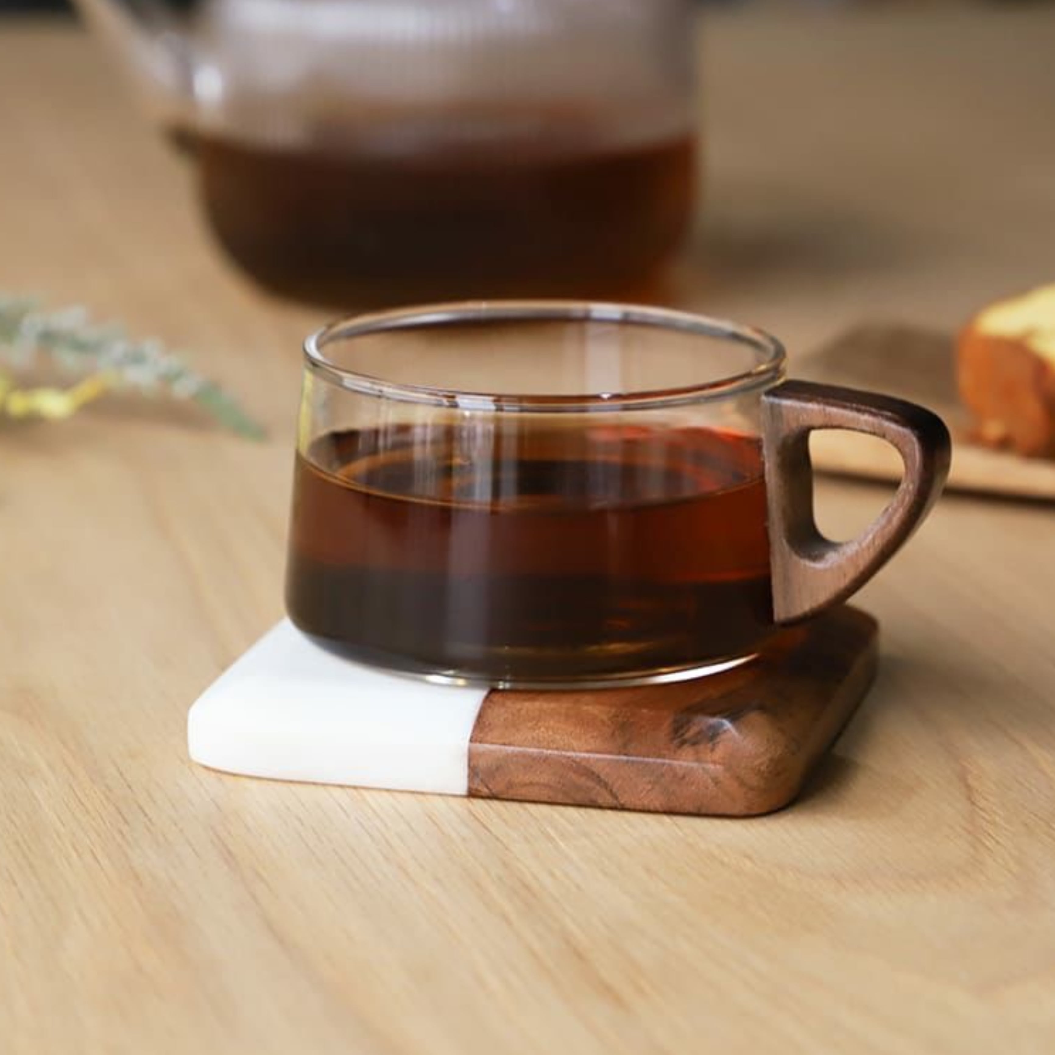 ウォルナットの持ち手がワンポイントとなり、ティータイムをより豊かな時間に、、、