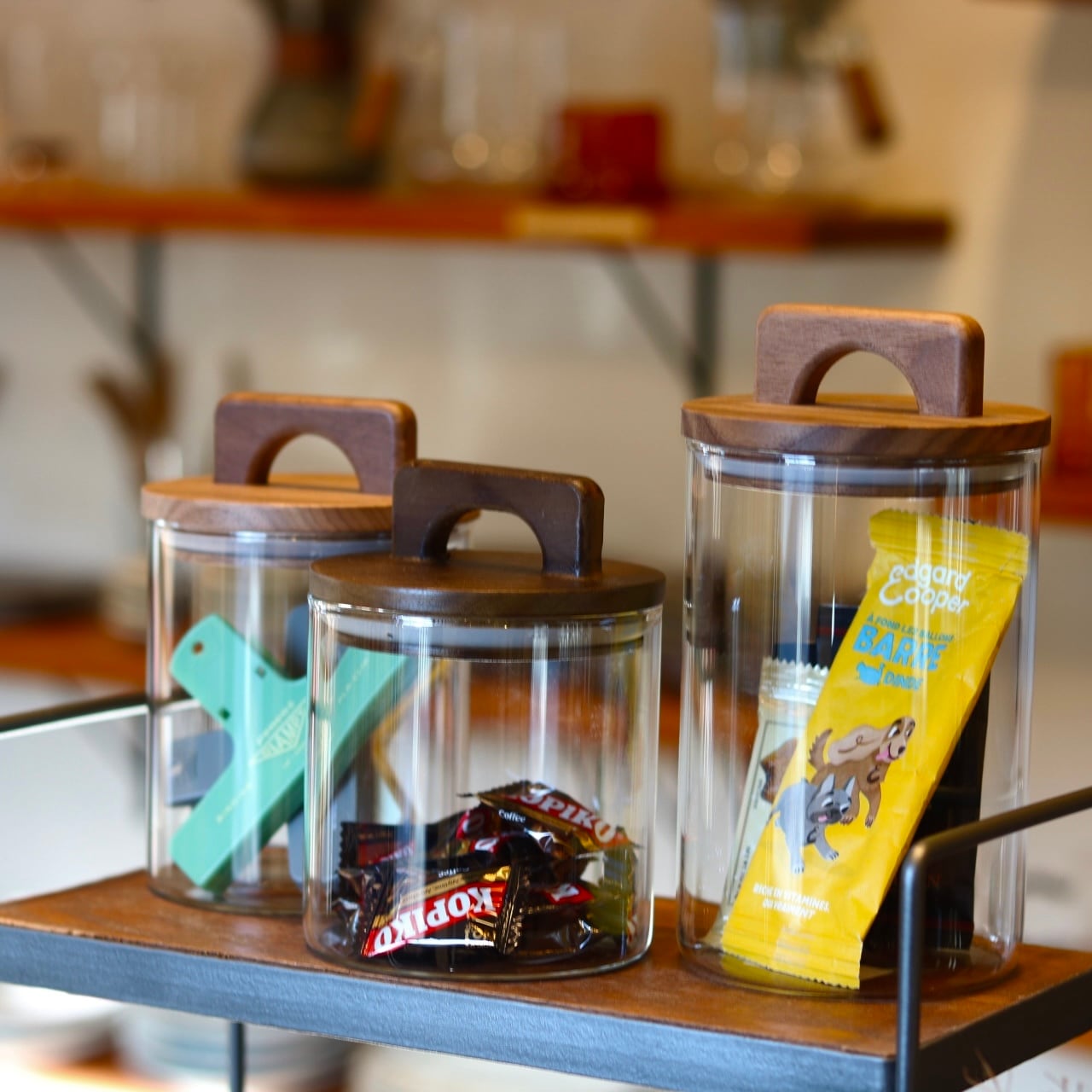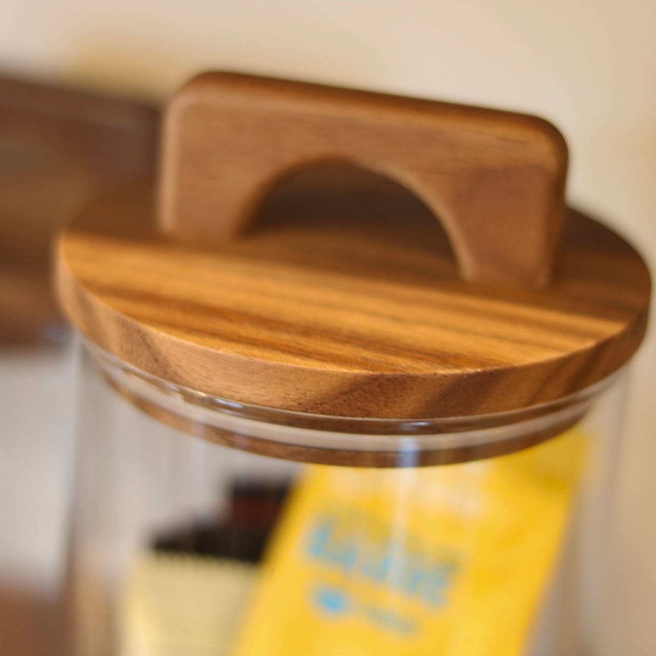 開けやすいようハンドルが付いた実用的なキャニスターは、なめらかな木の持ち手に触れる度安らぎをもたらします。