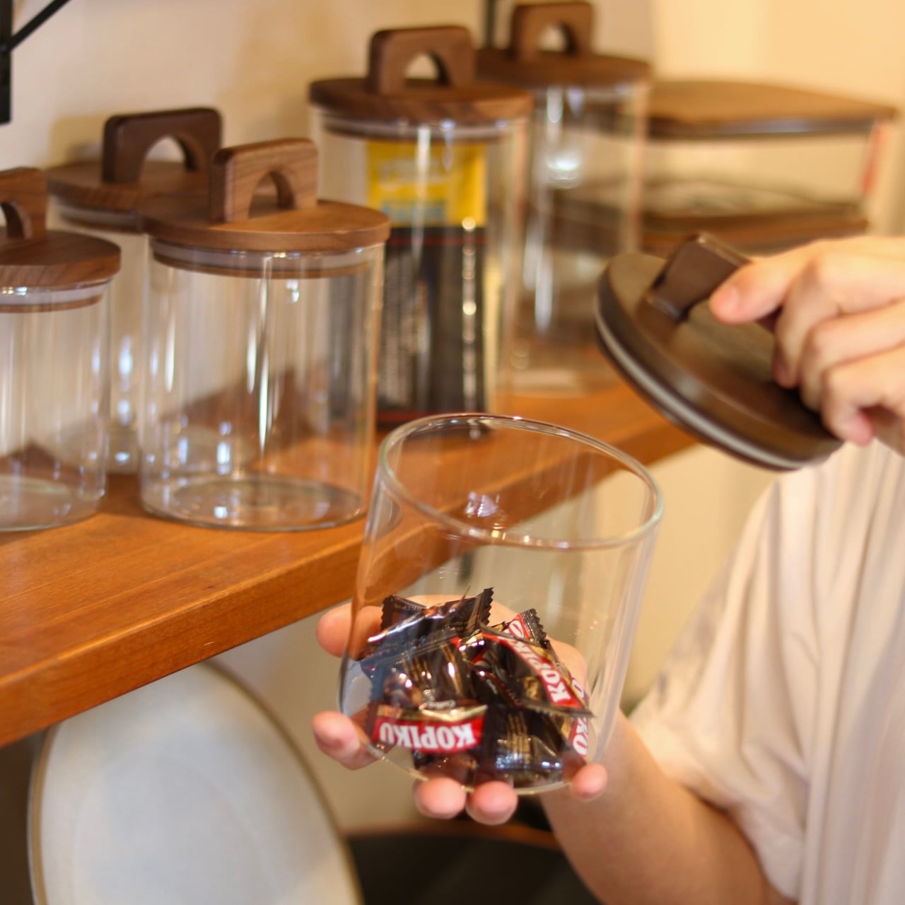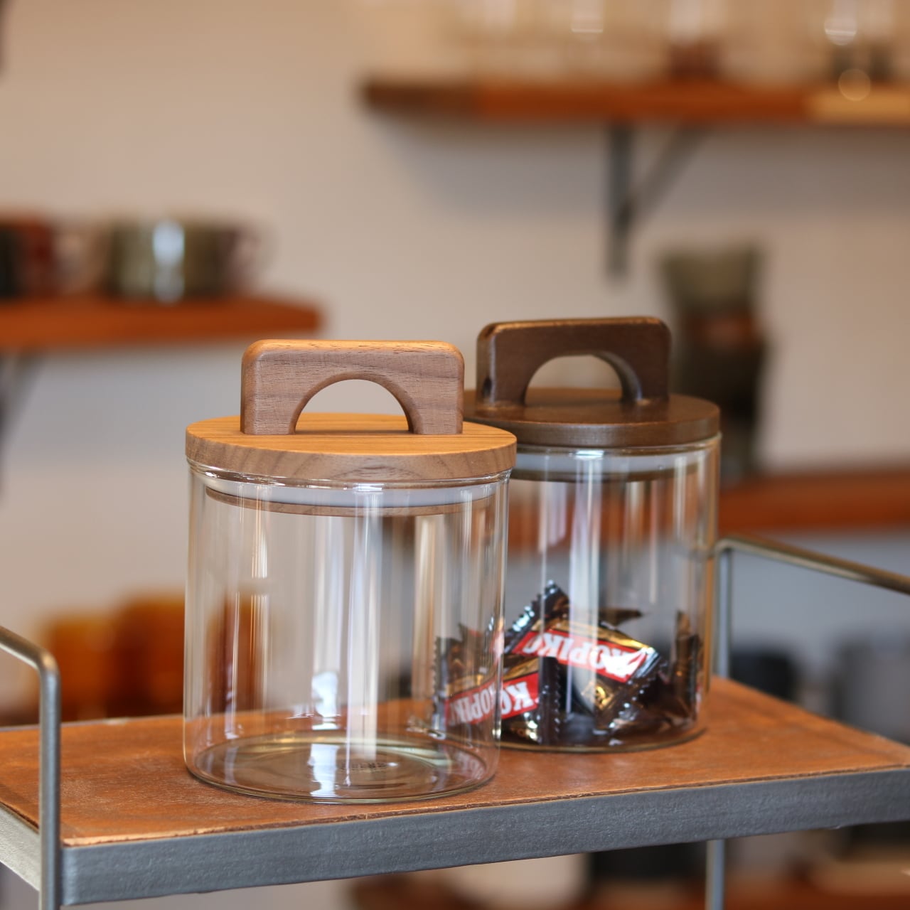 開けやすいようハンドルが付いた実用的なキャニスターは、なめらかな木の持ち手に触れる度安らぎをもたらします。