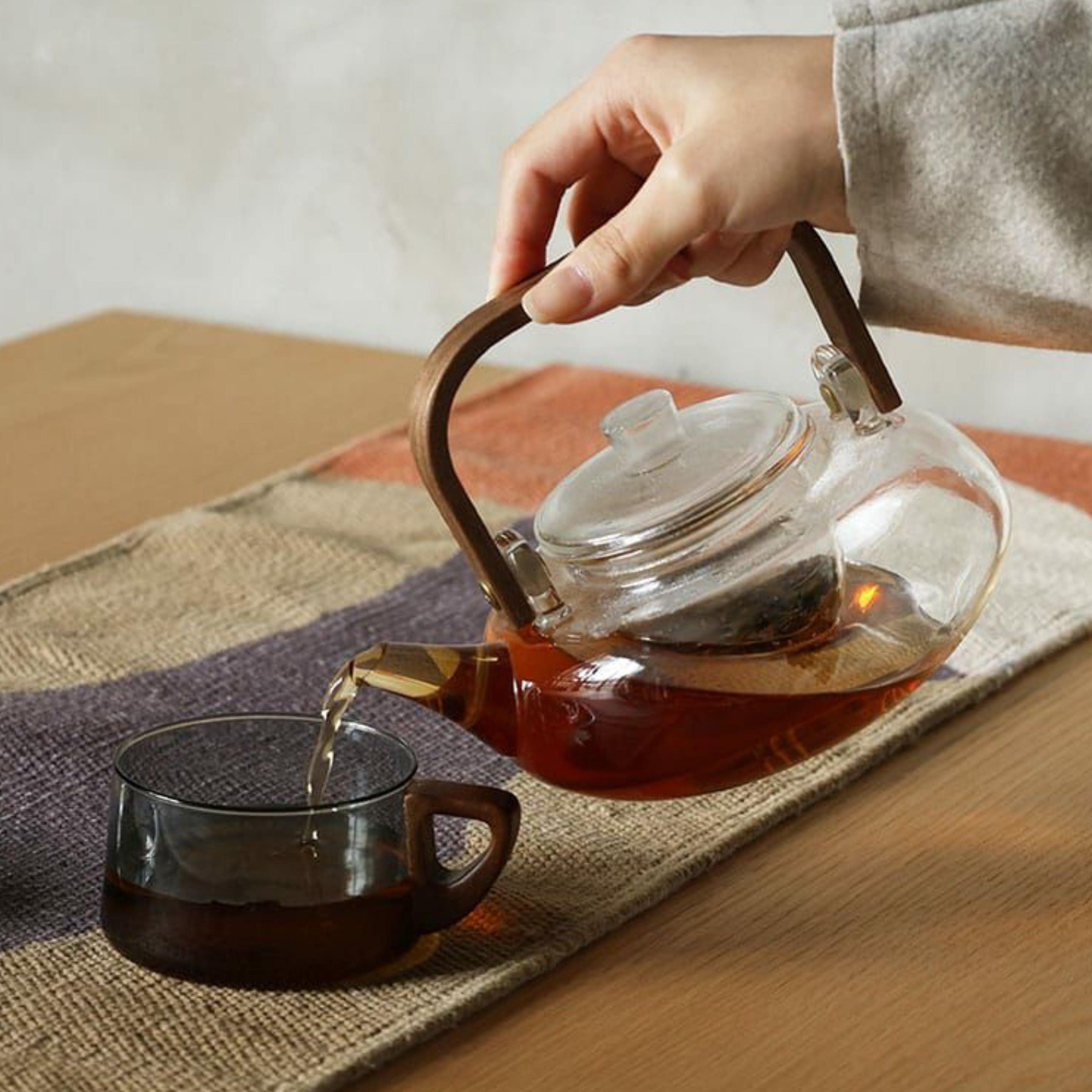 ウォルナットのやさしい感触、木目や色合いの自然なぬくもりが魅力の noon collection は、非常に安全な特性を持ち家庭用オーブンや調理器具にもよく使われているホウケイ酸ガラスを使用。ホウケイ酸ガラスは、低熱膨張率であるため耐熱衝撃性に優れています。急激な温度変化が生じても容易に割れず、長く愛用できる信頼の品質を実感いただけます。